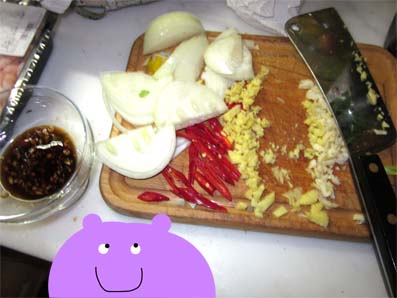 as well as lots of veg, prawns, pinapple etc .! la dii daaa!