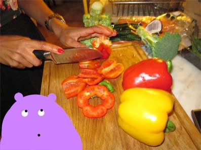 THEN ON WITH MAKING MAINs! yup! on with chopppin those peppers 4 our healthy stir fry! WOOP WOOOOOP.
